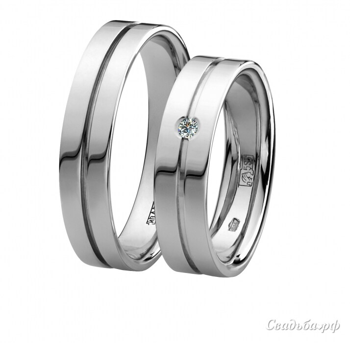 Утонченные парные обручальные кольца 585 пробы из белого золота, украшение «для нее» дополнено вставкой из бриллианта. При более детальном рассмотрении кажущаяся строгость дизайна оборачивается стремлением избежать излишеств и сохранить целостность изделий. Ежедневное ношение доказательств любви не доставит никакого дискомфорта благодаря специальной технике внутренней отделки comfort fit. Элегантные парные кольца придутся по душе поклонникам непреходящих ценностей классики.