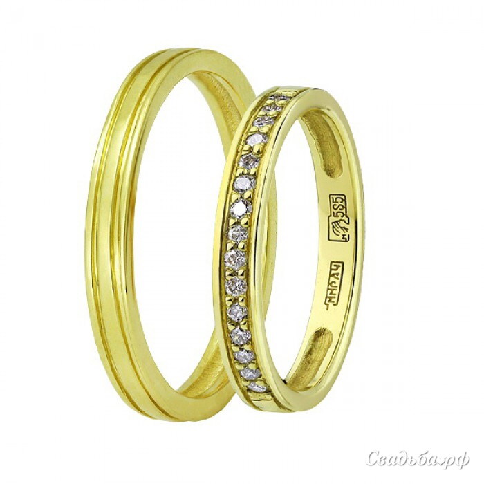 Восхитительные парные обручальные кольца из желтого золота 585 пробы, женский вариант дополнен вставкой из бриллиантов. Теплый оттенок металла и блеск бриллиантов прекрасно дополняют друг друга и являются прекрасным украшением в столь праздничный день. Изнутри парные кольца отделаны с использованием техники comfort fit, поэтому носить их — одно удовольствие. Элегантные парные обручальные кольца - прекрасный вариант для молодоженов со вкусом.