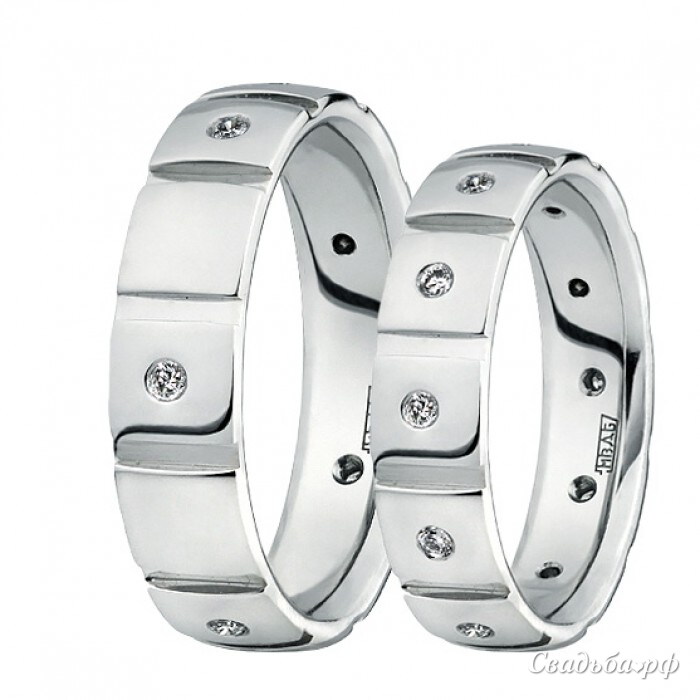 Оригинальные парные обручальные кольца из белого золота 585 пробы с бриллиантами. Оригинальный геометрический декор из платины и драгоценных камней призван подчеркнуть индивидуальность молодоженов. Продуманное исполнение внутренней части парных колец дарит ощущение комфорта при носке. Экстравагантные парные обручальные кольца станут прекрасным дополнением для самой удивительной свадьбы.