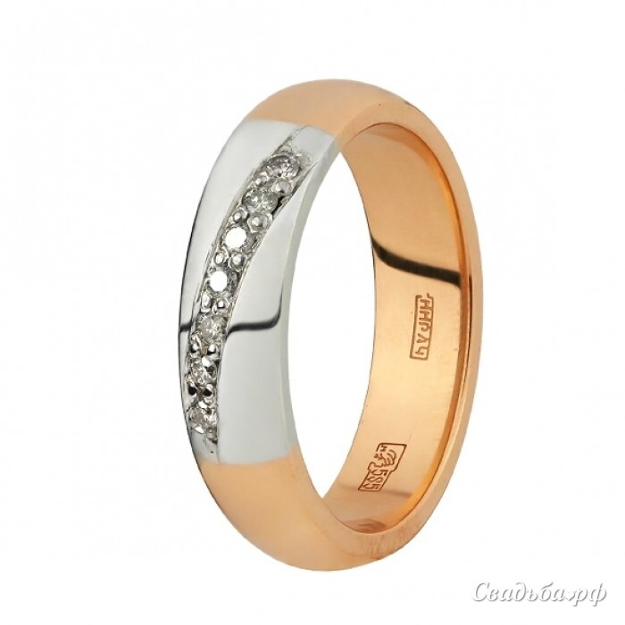 Утонченное обручальное кольцо создано из комбинации разных видов золота 585 пробы с бриллиантами. Оригинальность дизайна подчеркнута эффектным декором из драгоценных камней: они под углом помещены в центр украшения на вставке из белого золота. Особая внутренняя поверхность изделия сделает носку максимально комфортной. Это элегантное обручальное кольцо станет источником радости на долгие годы.