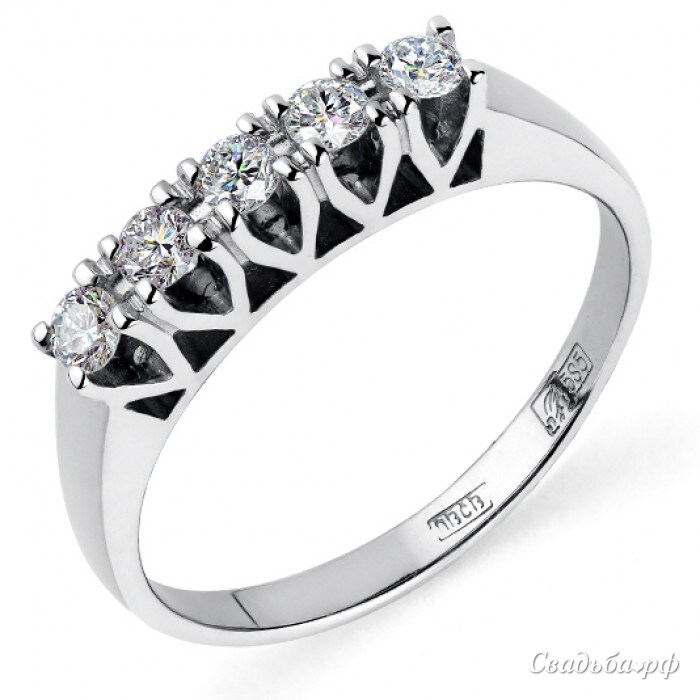 Эффектное помолвочное кольцо представлено лучшими отечественными ювелирами. Это стильное украшение из белого золота дополнено пятью чистейшими бриллиантами, закреплёнными в тонких оправах. Колечко отлично сидит на пальце и сочетается с другими украшениями. Это великолепное изделие будет радовать Вас своим блеском долгие годы.