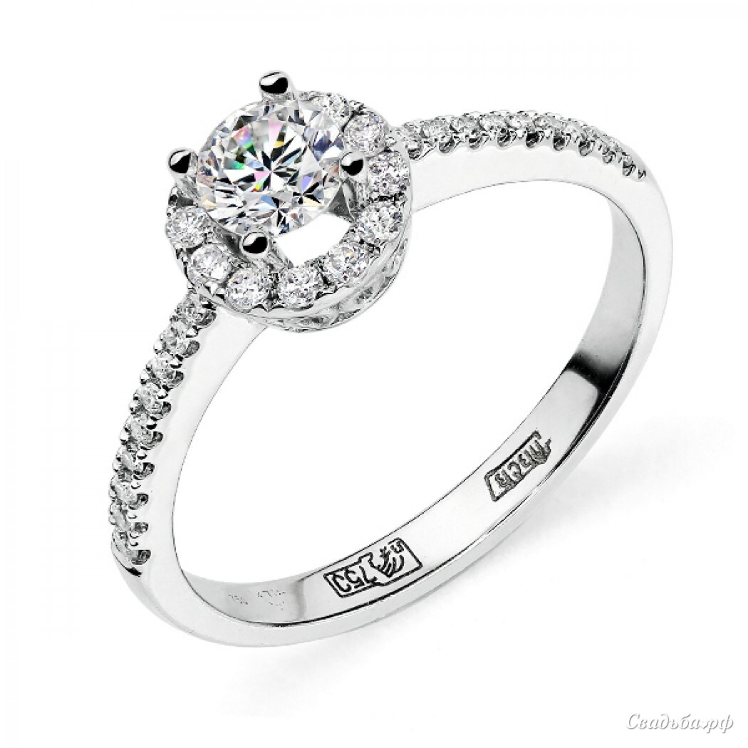 Потрясающее помолвочное кольцо от ведущих ювелиров России поражает своей роскошью и высочайшим качеством исполнения. Белое золото и целая россыпь чистейших бриллиантов придают этому изделию неповторимый шик. Изящный ободок украшен миниатюрными камнями и крупным бриллиантом в искусно выполненной оправе. Кольцо ослепляет своим блеском.